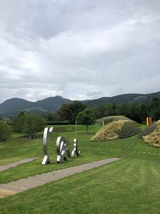 Beim Museumseingang des Museums Liaunig begrüßt mich die Skulptur von Giacometti von der ich mich zu erinnern glaube, dass sie einst vor der Hypo Zentrale in Klagenfurt gestanden ist. Schön, wenn es so sein sollte und nun den Besucher:innen gleich einmal beim Eingang vermittelt, dass hier viel Geld in zeitgenössische Kunstpositionen investiert wurde. 2008 wurde das Museum vom Industriellen Herbert Liaunig erbaut, das seine Sammlung zeitgenössischer Kunst zeigt, die in seinem Schloss Neuhaus nicht mehr genug Platz fand.